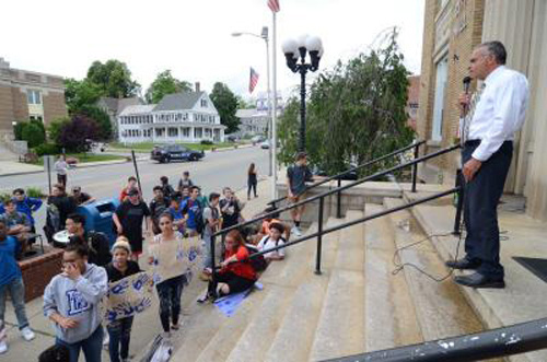 Leominster High School students protest faculty and staff layoffs with walkout, march to City Hall