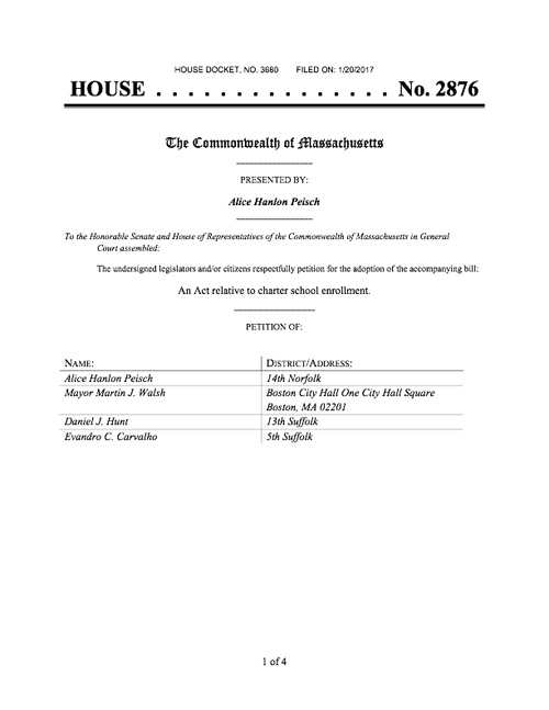 House Bill (H2876) for charter opt-out of lottery